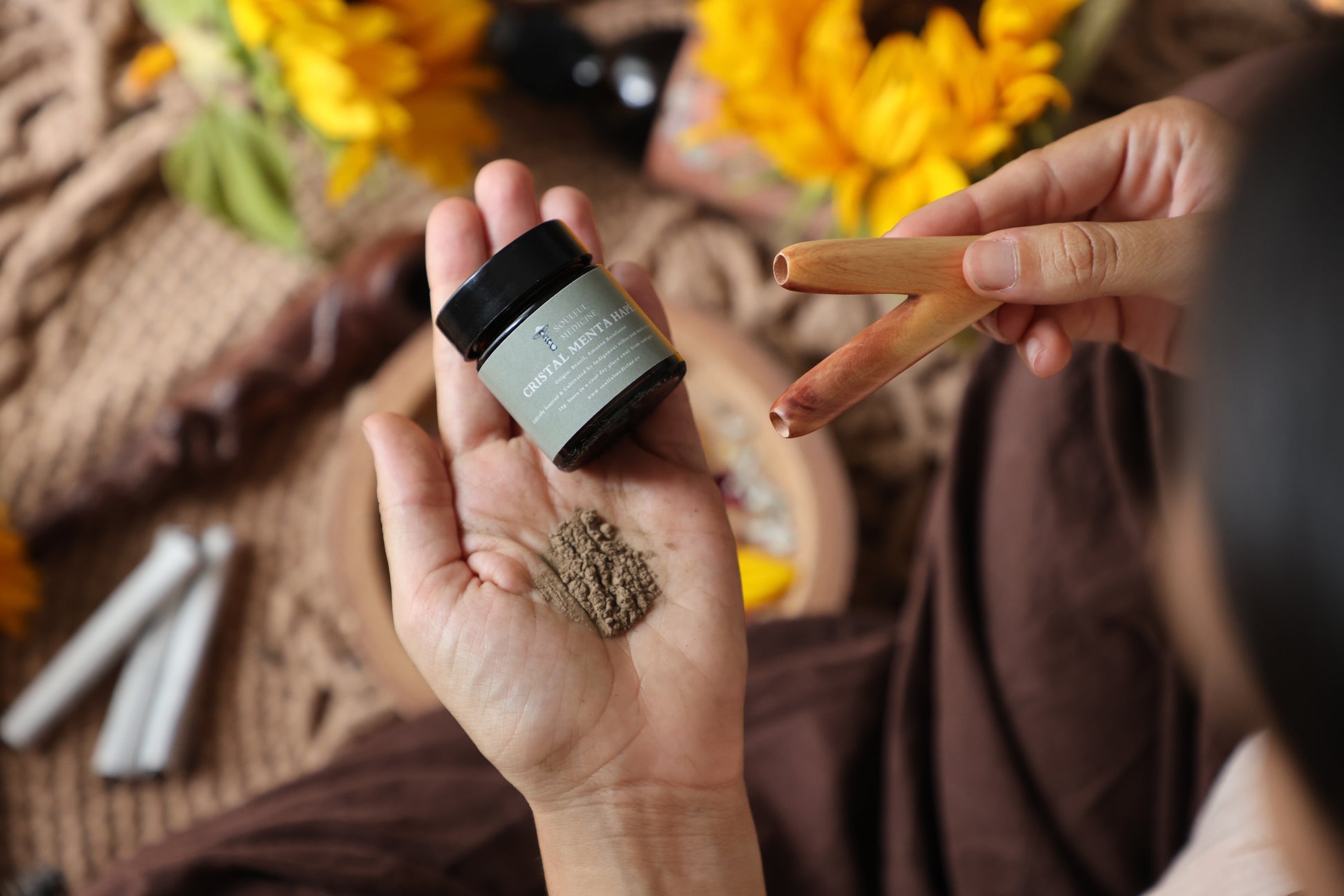 When infused into hapé, it supports a deeply meditative state. This sacred creation is best utilised in a quiet, intentional space, whether in a ceremony or for personal reflection. Inhale with purpose, sit with its wisdom and allow it to guide your healing journey.